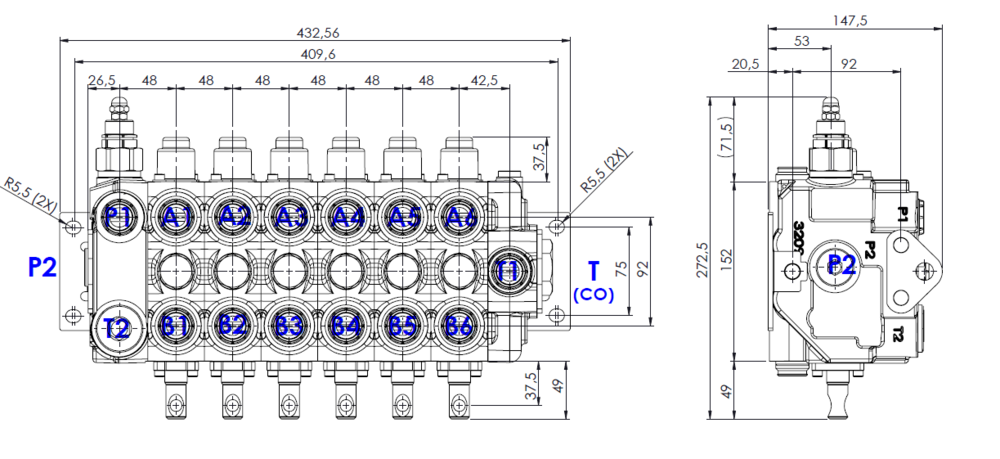 Клапан гидравлический KV196 - шестисекционный специально спроектированных распределитель с универсальным набором из 7 antichoc & anti cavitation предохранительных клапанов для защиты основных операций крана от динамических и грузовых перегрузок. Идеально подходит для установки на гидроманипуляторы.