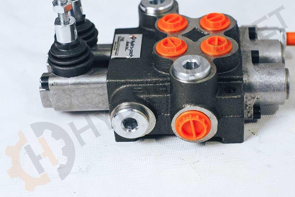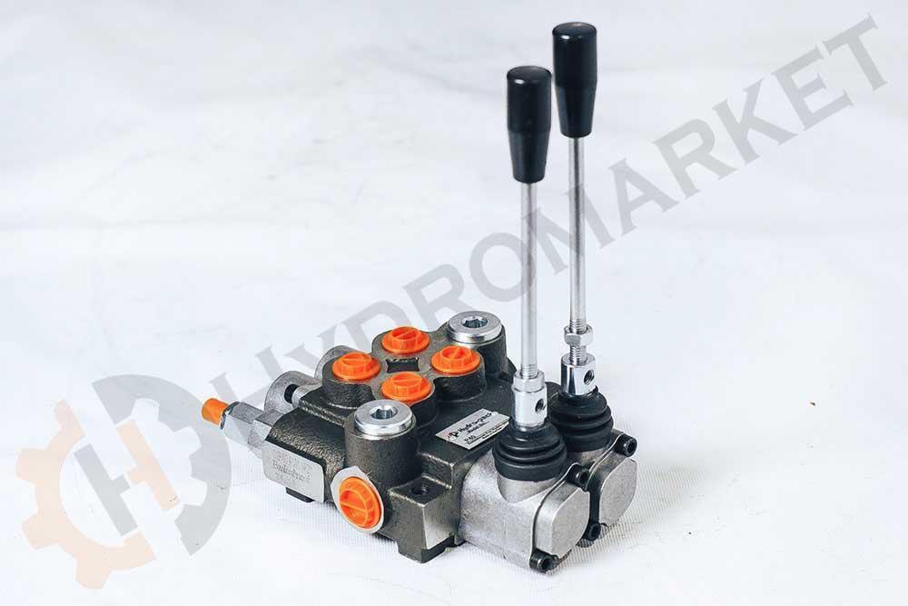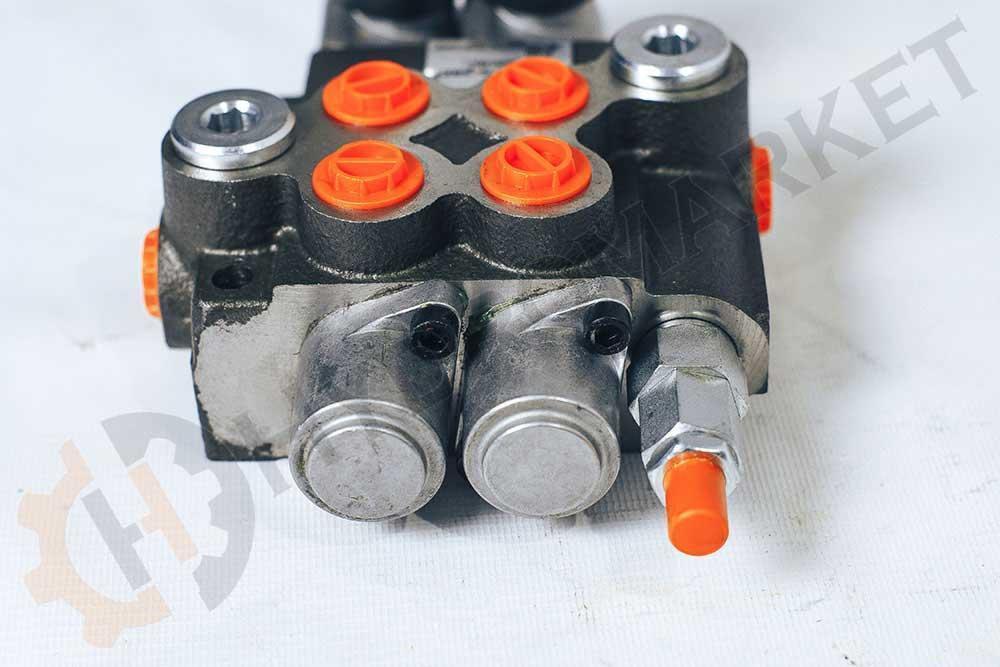Гидрораспределитель (Болгария) моноблочный с открытым центром 02р40 1K16K16 GKZ1 служит для управления двумя рабочими органами. Рукоятка с пружинным возвратом в нейтральное положение. В нейтральном положении рукоятки рабочая жидкость поступает в маслобак (открытый центр). Имеется регулируемый главный предохранительный (ограничительный) клапан.