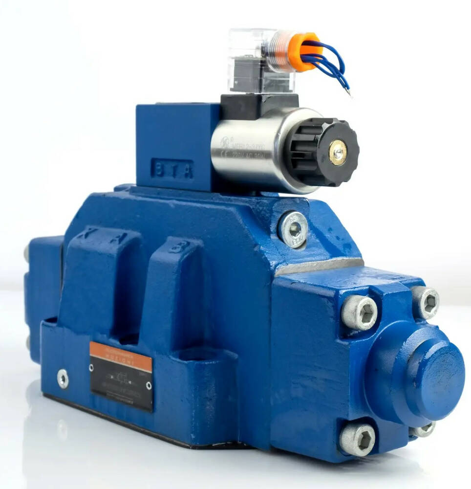 Гидрораспределитель типа H4WEH16D-6XEG24N9Z5L представляет собой 4-х линейный электромагнитный гидравлический распределитель золотникового типа с пилотным управлением, который используется для управления пуском, остановкой и направлением потока рабочей жидкости. Он имеет одну катушку напряжением 24 В постоянного тока, оснащен пилотом с пружинным возвратом, аварийной кнопкой и квадратным разъемом со светодиодом. Без клапанов предварительной нагрузки и разгрузки. Внешний пилот и дренаж. Имеет литой оксидированный корпус. Работает по схеме D.