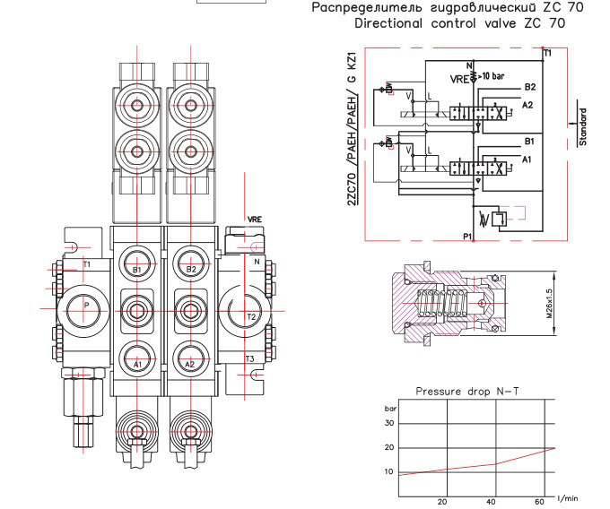 Направленный регулирующий клапан ZC70 представляет собой вариант направляющего клапана PC70 - специального корпуса и новых катушек. В этом варианте положение катушки, расположенное над корпусом, расположено гораздо точнее, и благодаря этому клапан имеет лучшую пропускную способность. Это также подразумевает более точную диаграмму измерения. Этот гидравлический клапан ZC70 может быть реализован с прямым управлением соленоидами ON-OFF и сечением.