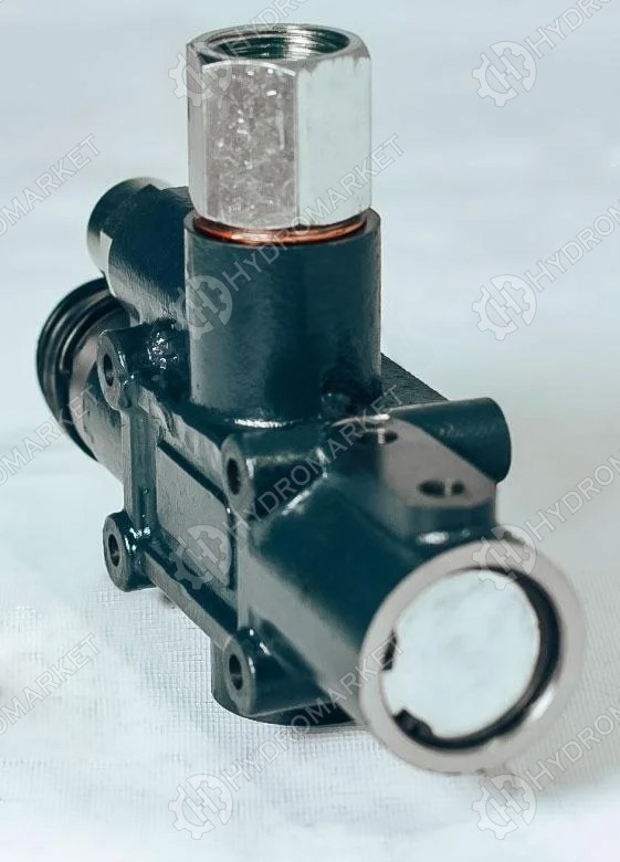 Гидравлический клапан (гидрораспределитель)  – устройство, которое регулирует и направляет потоки жидкости. Он крепится на бак и с помощью шлангов высокого давления соединяется с гидросистемой автомобиля. С помощью гидрораспределительного клапана (дивертора) осуществляется регулировка скорости поднятия и опускания кузова самосвала либо прицепа. Регулировка самого клапана осуществляется пневматическим джойстиком из кабины водителя.
