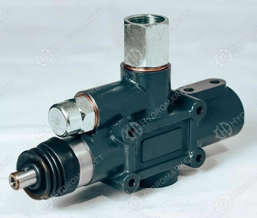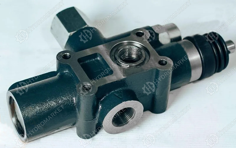Гидравлический клапан (гидрораспределитель)  – устройство, которое регулирует и направляет потоки жидкости. Он крепится на бак и с помощью шлангов высокого давления соединяется с гидросистемой автомобиля. С помощью гидрораспределительного клапана (дивертора) осуществляется регулировка скорости поднятия и опускания кузова самосвала либо прицепа. Регулировка самого клапана осуществляется пневматическим джойстиком из кабины водителя.