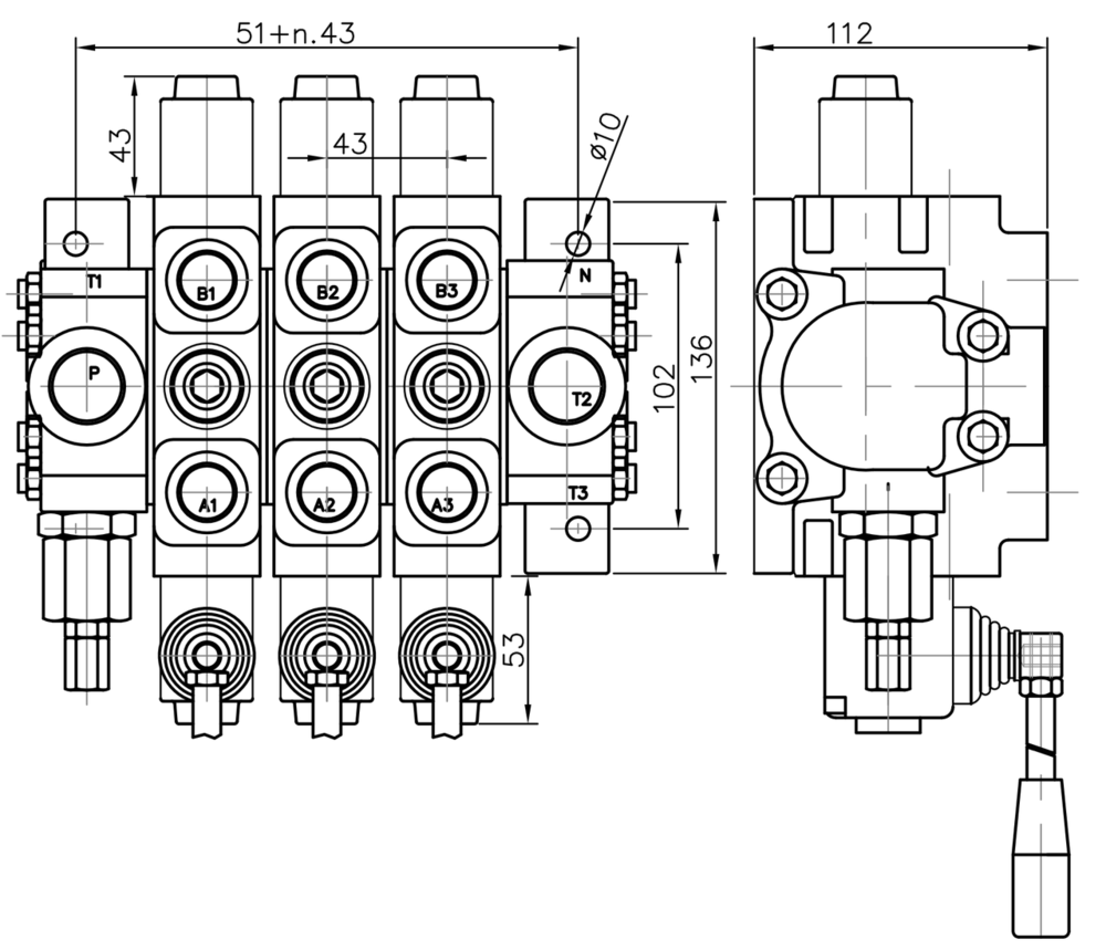 Механический гидрораспределитель - дивертор секционный (от 1 до 8 секций), рассчитан на максимальную производительность 80 л/мин и рабочее давление до 320 бар.