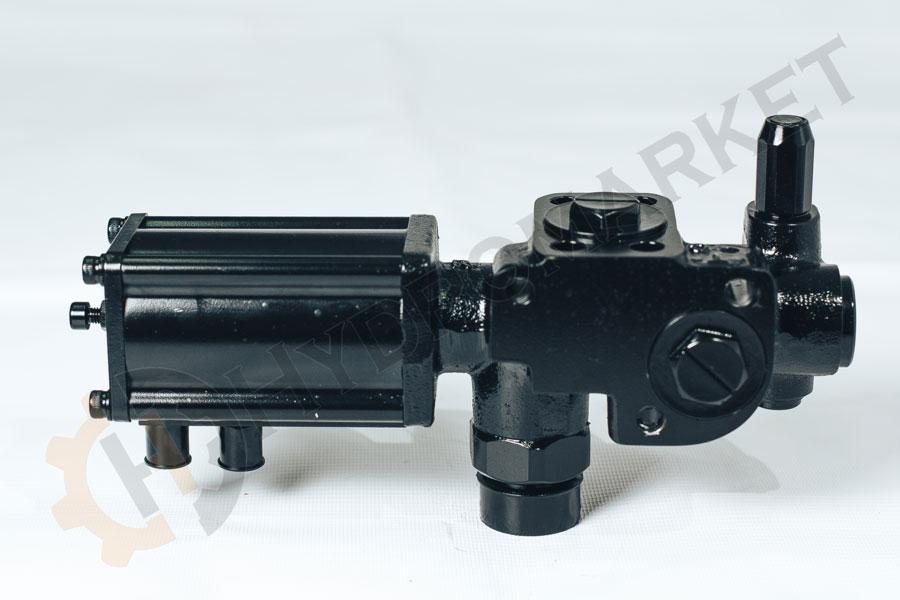 Гидравлический клапан (гидрораспределитель)  – устройство, которое регулирует и направляет потоки жидкости. Он крепится на бак и с помощью шлангов высокого давления соединяется с гидросистемой автомобиля. С помощью гидрораспределительного клапана осуществляется регулировка скорости поднятия и опускания кузова самосвала либо прицепа.Управление клапаном осуществляется пневматическим джойстиком из кабины водителя..