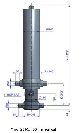 Гидроцилиндр 5-ти штоковый Hyva, фронтальный с внешним кожухом (FС A157-5-06230-000K):