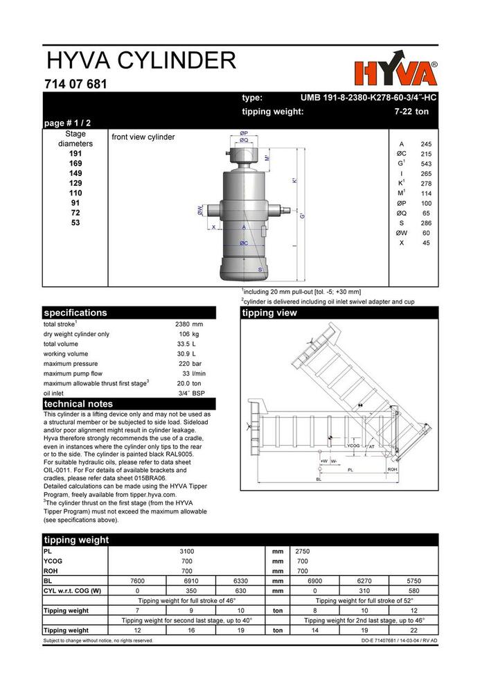 | 71407681 | UMB 191-8-2380-K278-60-3/4"-HC | 116 | 7 - 22 |