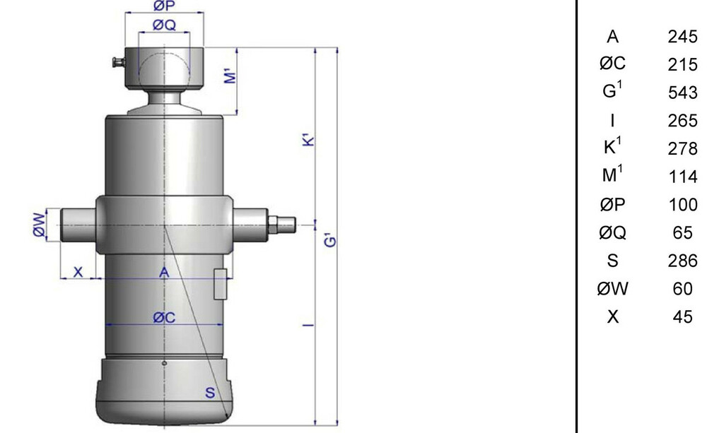 Гидроцилиндр 8-ти штоковый, для трехсторонней/задней разгрузки Hyva