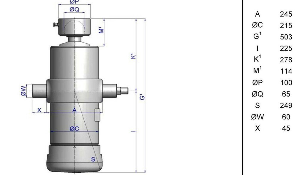 Гидроцилиндр 8-ти штоковый, подкузовной для трехсторонней разгрузки Hyva (UMB 191-8-2060-K278-60-3/4"-HC):