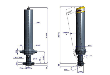 Телескопические фронтальные цилиндры FC в первую очередь предназначены для прямых изголовий с грузоподъемностью более 100 тонн. Цилиндр типа FC легкий, прочный, не требует технического обслуживания и обеспечивает максимальную устойчивость самосвала. В течение многих лет опрокидывающиеся цилиндры Hyva FC заслужили репутацию своей надежности и соотношения цены и качества.