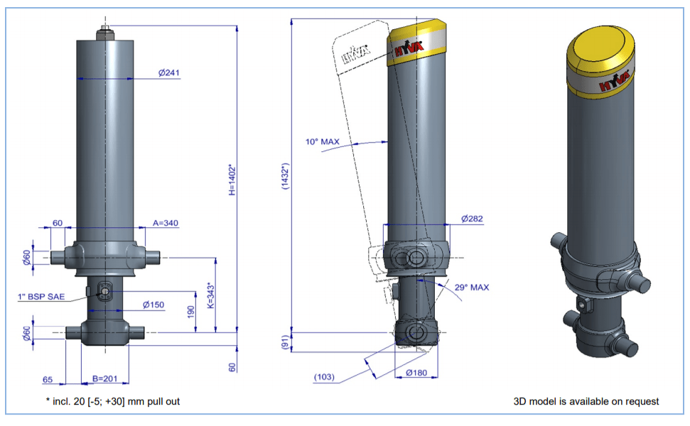 Гидроцилиндр FC A129-4-04320-000-K0343 (фронтальный с кожухом) HYVA