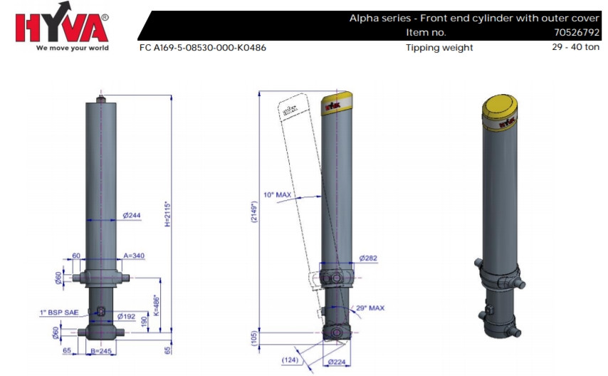 Гидроцилиндр FC A169-5-08530-004-K0486 (фронтальный с кожухом) HYVA 70526792