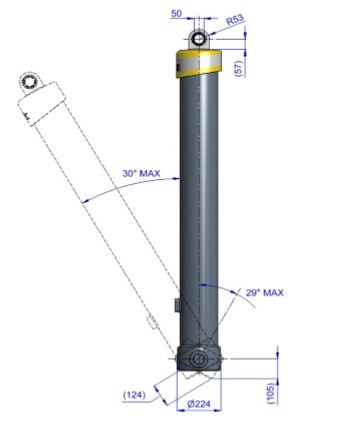 Телескопический гидроцилиндр FE A169-5-05405-019-K1399 (фронтальный с ухом) Hyva