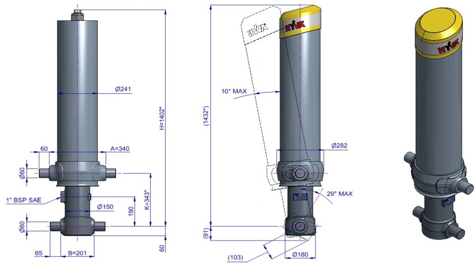 Фронтальные гидроцилиндры HYVA FC и FE предназначены для самосвалов и полуприцепов.