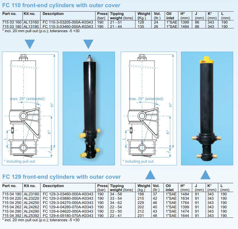 Компания Hyva - крупнейший в мире производитель гидравлических подъёмных цилиндров для грузового автотранспорта. Более 30 лет Hyva разрабатывает и производит полный спектр телескопических подъёмных цилиндров, как для фронтальной, так и подкузовной установки. Новые цилиндры компании Hyva за счет небольшого веса поднимают и опускают кузов быстрее, используя меньшее количество масла и по-прежнему сохраняя при этом мощность, устойчивость и легкость технического обслуживания.