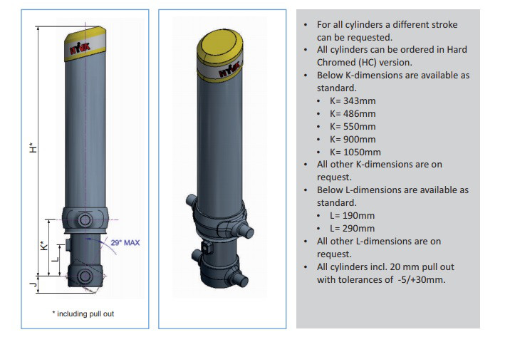 Гидроцилиндры HYVA отличаются высокой надежностью, стабильностью и долговечностью. Производятся из холоднокатаных труб с пластической деформацией > 550 N/mm2  и с минимальными отклонениями по соосности < 2%. Использование высококачественных уплотнений позволяют эксплуатировать технику в экстремальных условиях, при температурах до -50 С.