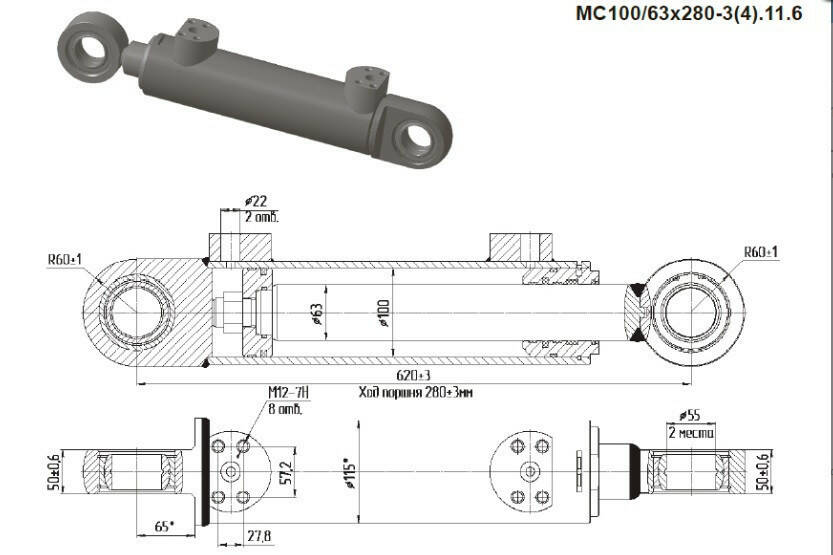 Гидроцилиндр МС 100/63х280-3.11.6(620) Гидросила