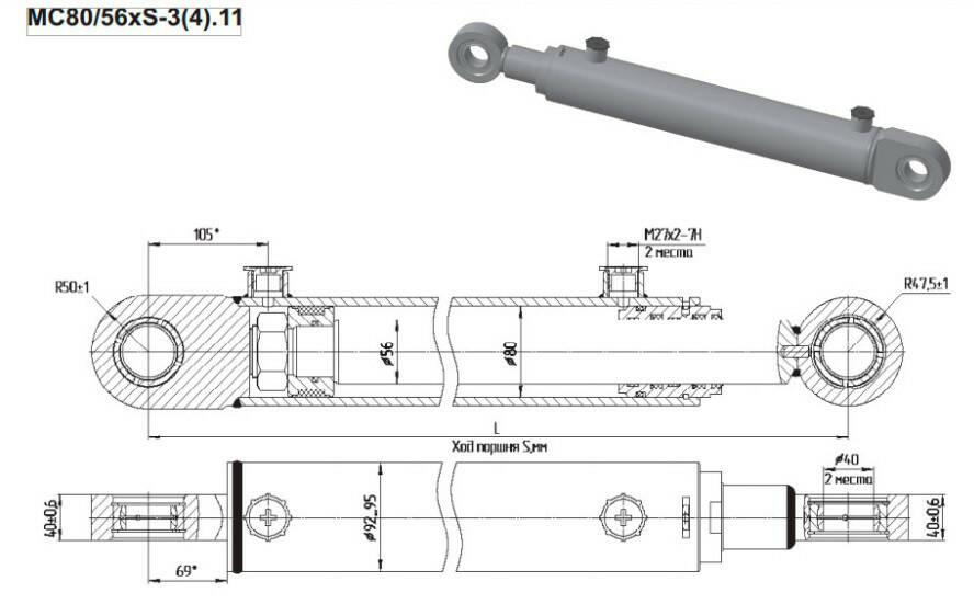 Гидроцилиндр МС 80/56Х900-3.11.2 (1250) Гидросила