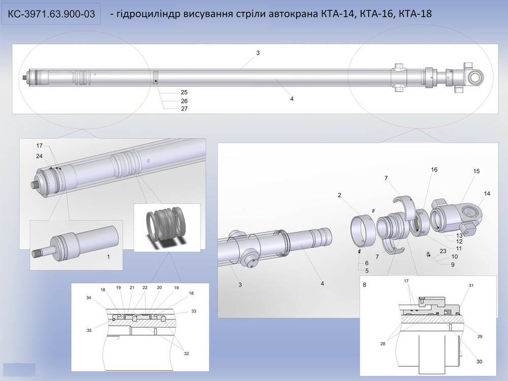 Гидроцилиндр выдвижения стрелы автокрана КТА-16, КТА-18 Дрогобычский завод автокранов
