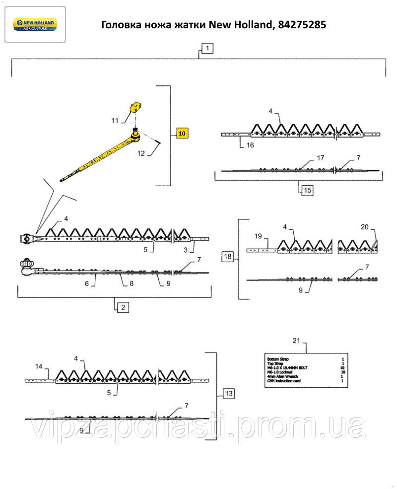 18 - 84585651 - KNIFE Fine, Segmented Tail Assy, Incl 4, 7, 9, 19, 20