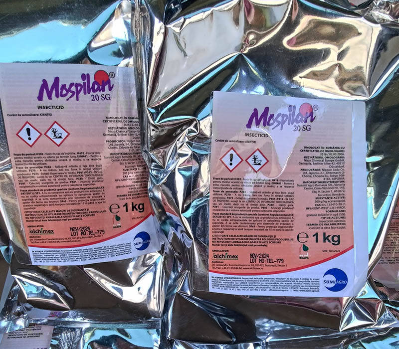 Моспилан  системный инсектицид, у которого контактно-желудочное действие, защищает от семейства чешуекрылых, полужесткокрылых, трипсов, жесткокрылых и ровнокрылых. Спектр действия препарата моспилан широкий. Системное и контактное действия моспилан позволяют воздействовать на вредителей также и через необработанные участки растений. Средство моспилан может распространяться по культуре. Системный инсектицид моспилан имеет контактно-кишечное действие. Ацетамиприд, ( 200 г/кг ) – действующее вещество инсектицида моспилан. к/т  +38 0664380368