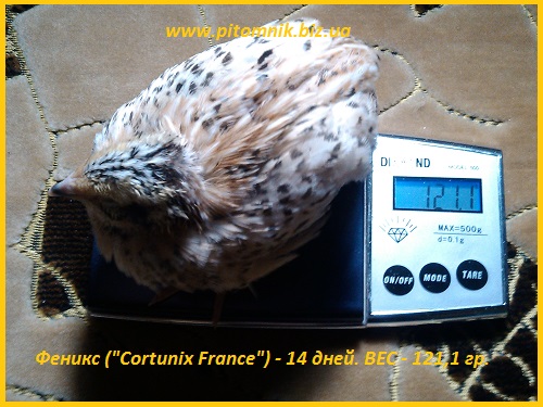 ? Вес суточных перепелов "индопелок" от 13 до 14 грамм.