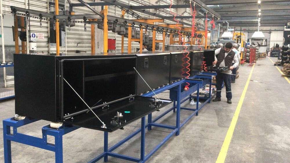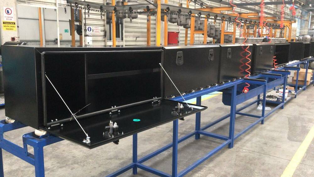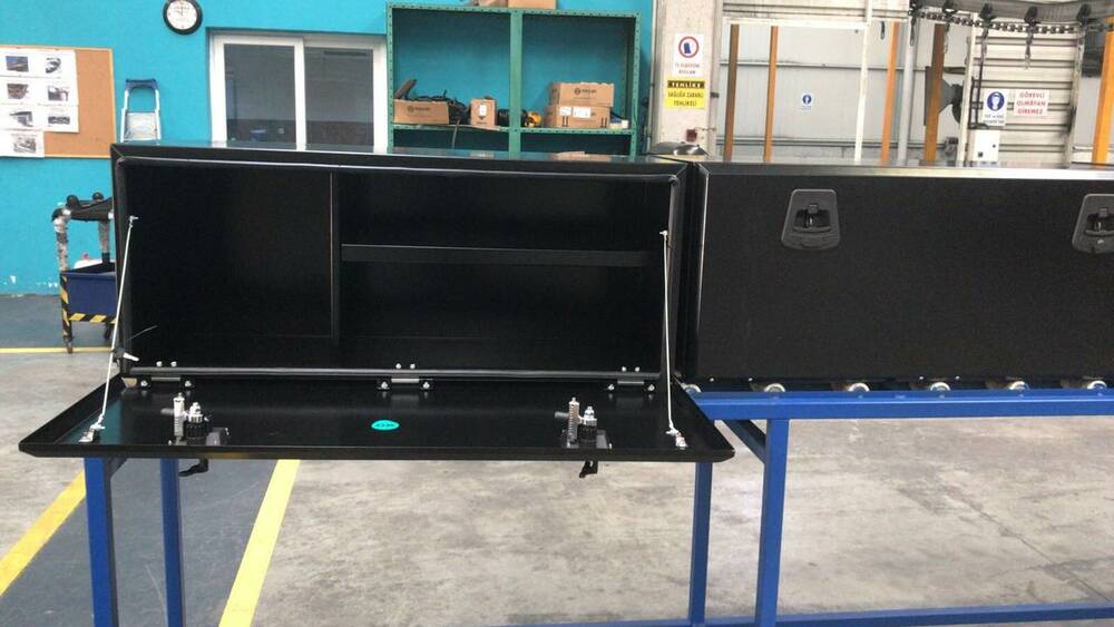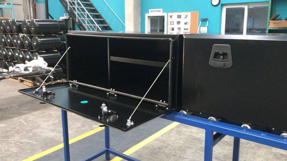 Инструментальные ящики используются для хранения в них инструмента и оборудования для обслуживания автомобиля. Устанавливаются на грузовые автомобили, полуприцепы, прицепы, вахтовые автобусы, и другую спец. технику. Изготавливаются из прочного листового металла со специальным антикоррозийным покрытием.