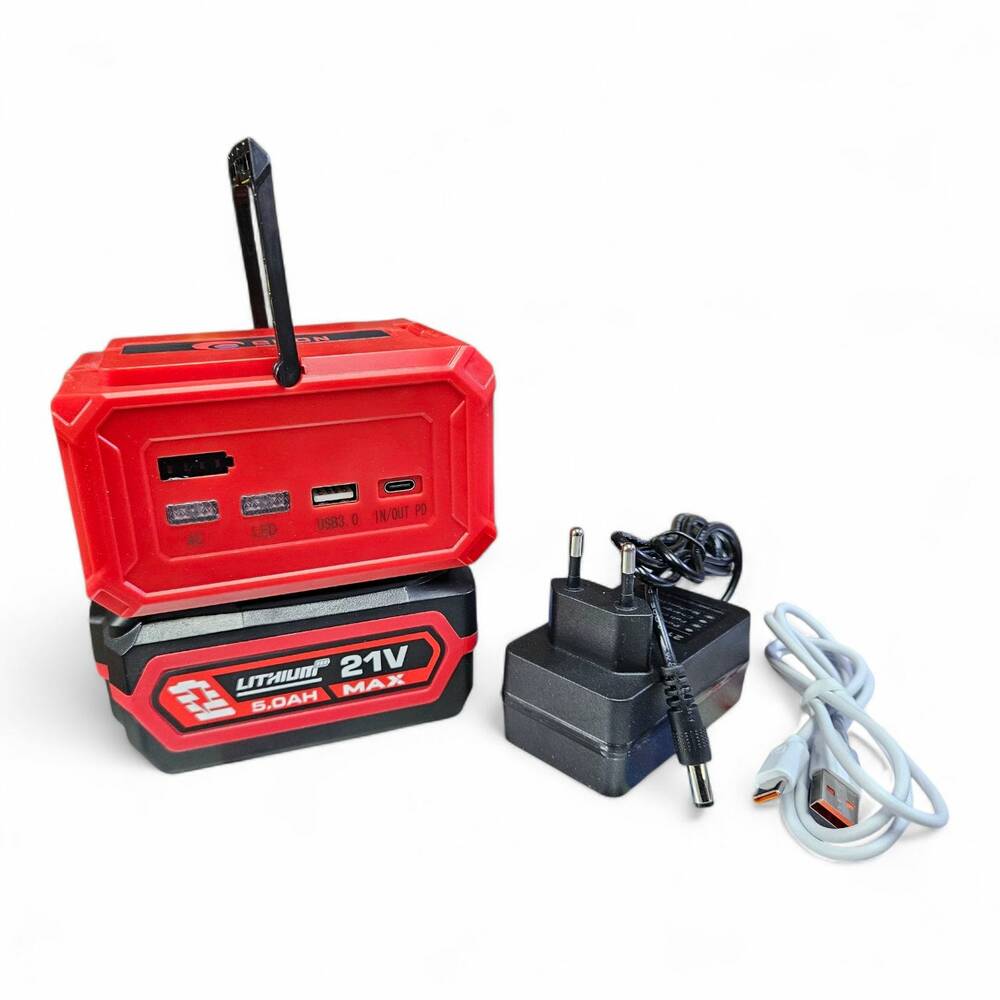 • Перетворює постійний струм, напругою 20 В, акумуляторної батареї в змінний струм 220 В, для живлення портативної техніки;