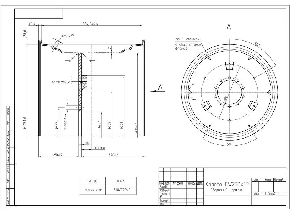 Изготовление колесных дисков для трактора New Holland 8390 DW20х30 (600/70р30) и DW23х42 (710/70р42)