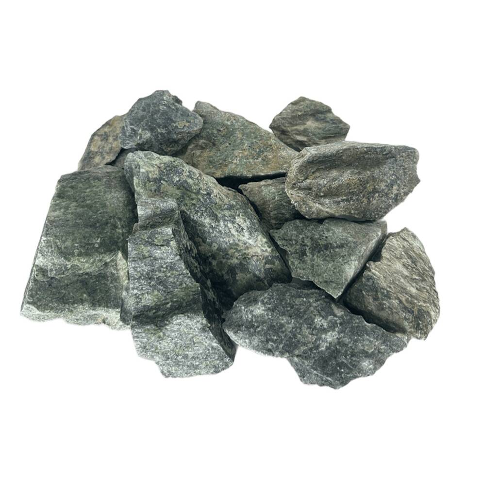 Колотый нефрит — это натуральный минерал, который идеально подходит для использования в банях и саунах. Его ценят за сочетание исключительной прочности, долговечности и естественной эстетики. Благодаря колотой форме фракцией 5–10 см камень хорошо распределяет тепло и позволяет получить мягкий, насыщенный пар, который создает в парной особый микроклимат.