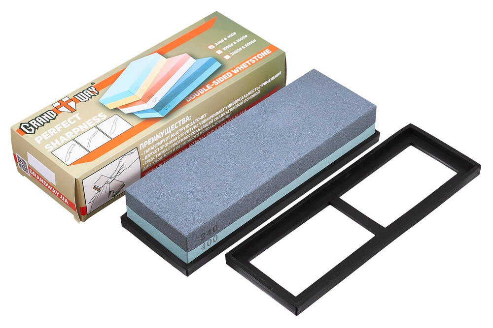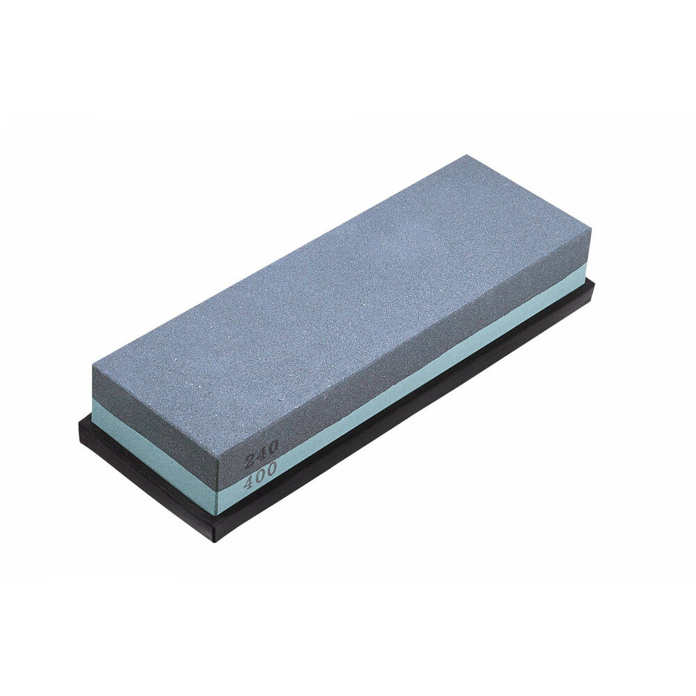 2. Двосторонній точильний корундовий камінь (240 /400), призначений для різних типів робіт. Одна сторона, що має зернистість 240 гріт – найбільш грубих робіт,друга 400 гріт –для більш делікатних. Підходить для роботи з ножами, садовими та деревообробними інструментами.