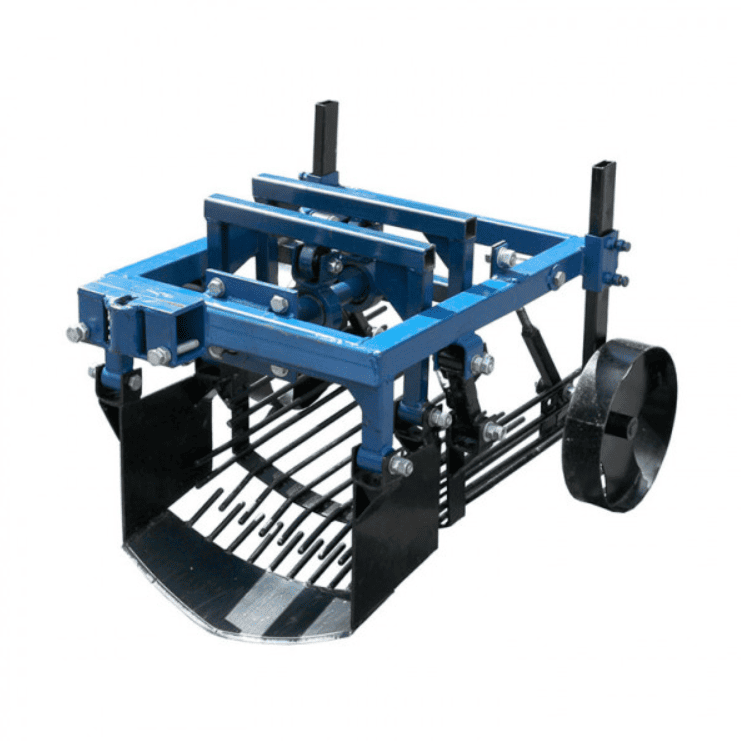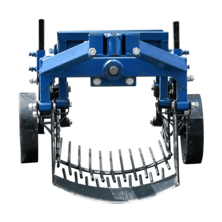 Активный нож шириной 382 мм и толщиной 5 мм имеет остроконечную кромку, что позволяет точно подрезать слой грунта. Грохот состоит из 15 стальных прутков по 500 мм длиной и 10 мм толщиной – он эффективно отделяет клубни от земли.