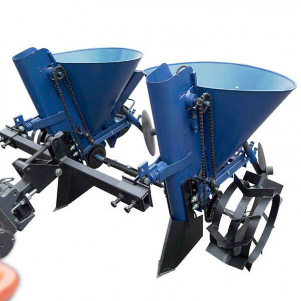 Дворядна ланцюгова картоплесаджалка призначена для механізації посадки картоплі на попередньо оброблених і підготовлених ґрунтах( при вологості ґрунту не більше 30%) та одночасного внесення мінеральних добрив. Агрегатується з мототракторами. За основу взята модель, що добре себе зарекомендувала – ланцюгова картоплесаджалка АПК-Ц.