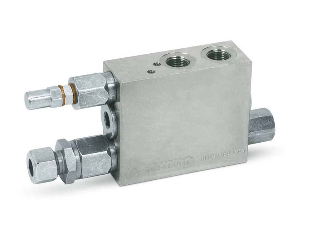 Данный клапан оснащен клапаном блокировки двойного действия, который обеспечивает большую безопасность и дает возможность размещать и блокировать цилиндр в любом месте. Изменение хода стержня поршня осуществляется посредством клапана максимального давления дифференцированного четко в мертвой точке плуга, развивая большую мощность и скорость. Этот тип клапанов может также монтироваться на неуравновешенные и тяжелые плуги с цилиндрами, имеющими следующие внутренние диаметры: 40/50 мм, 60/80 мм, 80/100 мм, 100/110 мм, 110/130 мм.