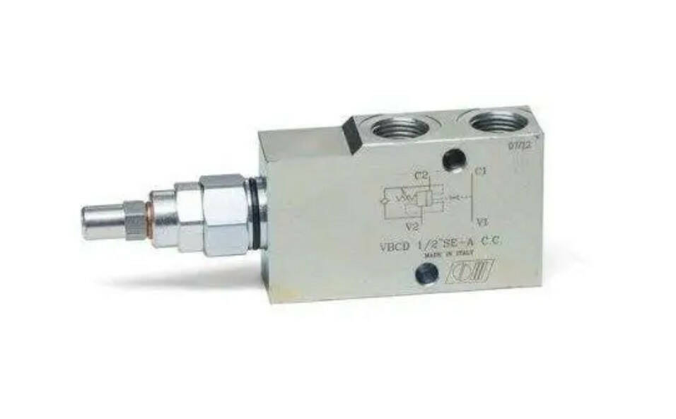 Тормозной клапан VBCD 3/8 SE/A CC от итальянской компании Oleodinamica Marchesini, используется для управления движением и фиксацией привода в одном направлении, благодаря контролируемому спуску груза. Клапан не допускает кавитации гидропривода. Он не чувствителен к обратному давлению.