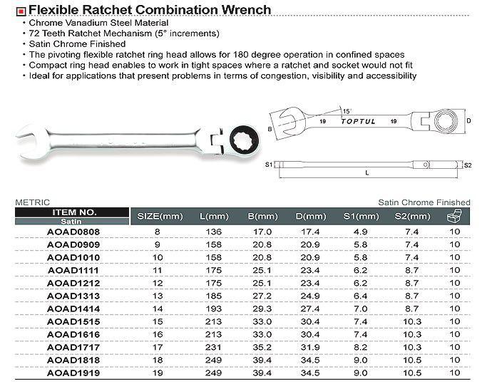 Ключ комбинированный трещоточный шарнирный TOPTUL 12мм AOAH1212