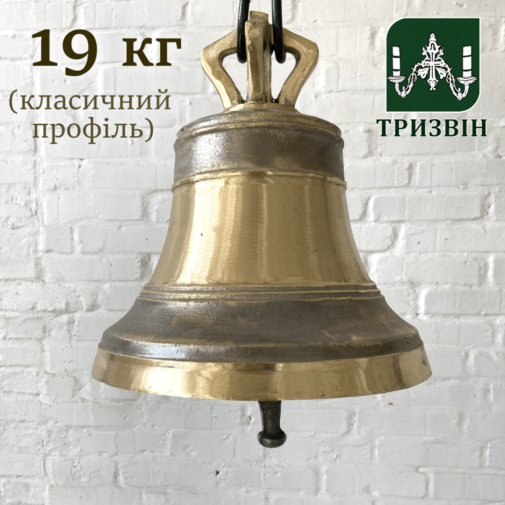 Малый церковный колокол, отлитый из латуни и украшен разнообразными декорирующими элементами.
