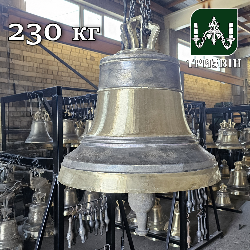 Большой церковный колокол, который изготовлен с применением исключительно современной технологии и высококачественных материалов. В качестве основного материала была использована латунь, которая характеризуется длительным сроком службы. С целью улучшения эстетических характеристик колокол украшен разнообразными декорирующими элементами.