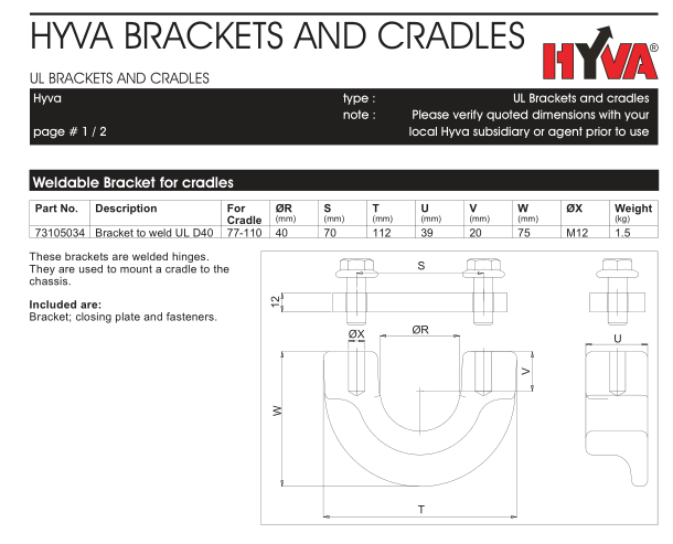 Характеристики для креплений UCB Hyva:
