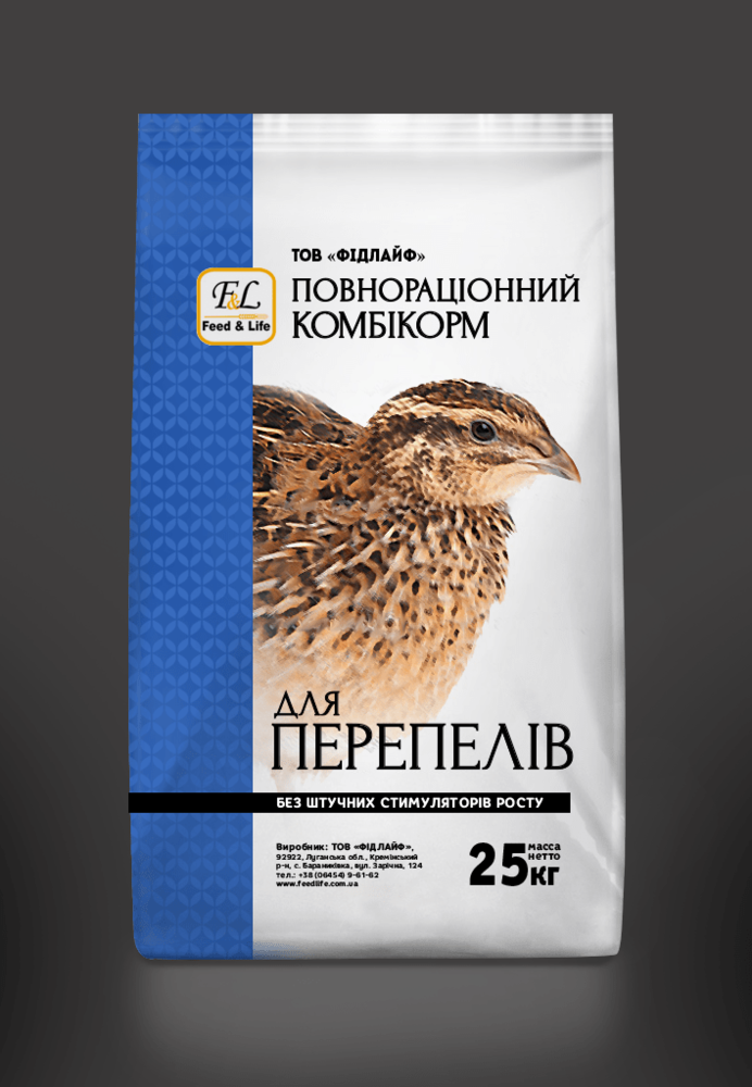 Полнорационный комбикорм ТМ "Фидлайф" для перепелов-несушек продуктивного периода. Фасовка 25 кг.