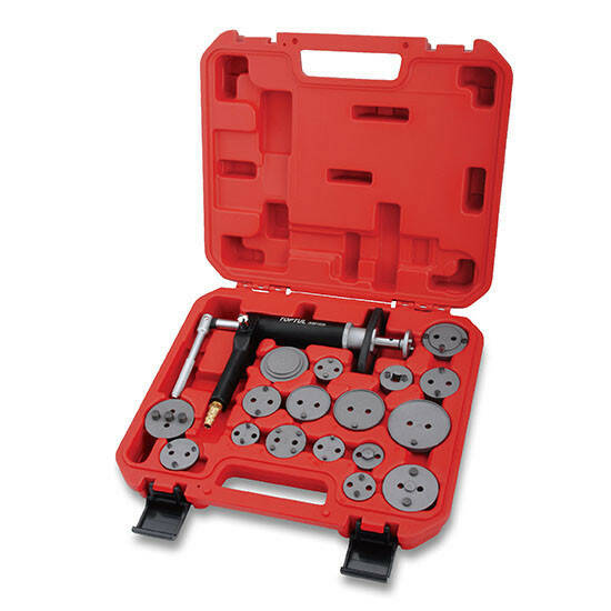 TOPTUL JGAI1804 – это универсальный пневматический набор для обслуживания суппортов и тормозных цилиндров, предназначенный для удобного вдавливания и вращения поршней при замене тормозных колодок. Идеальное решение для СТО и профессионального использования с подключением к стандартной пневмосистеме.