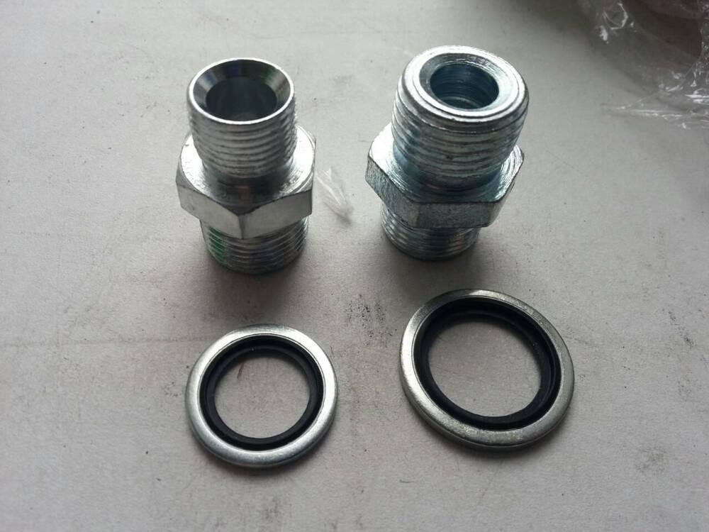 Данный комплект штуцеров состоит из 8 штуцеров, 2 штуцера идут на вход и слив РТ - G 1/2" на М20х1.5 ( ключ 24), возможно изменить комплектацию и сделать вход и слив под М27х1.5 ключ 32, а 6 штуцеров идут на рабочие органы А,В - G 3/8" ( или есть модификация корпусов с отверстиями под 1/2") на М20х1.5 (ключ 24). Все штуцера идут с качественными металлорезиновыми кольцами DICSA, Испания!