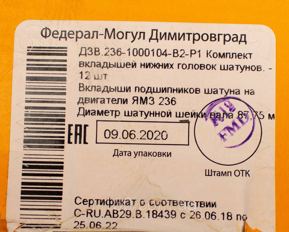 Вкладыши шатунные ЯМЗ-236 Р1, 236-1000104-В2