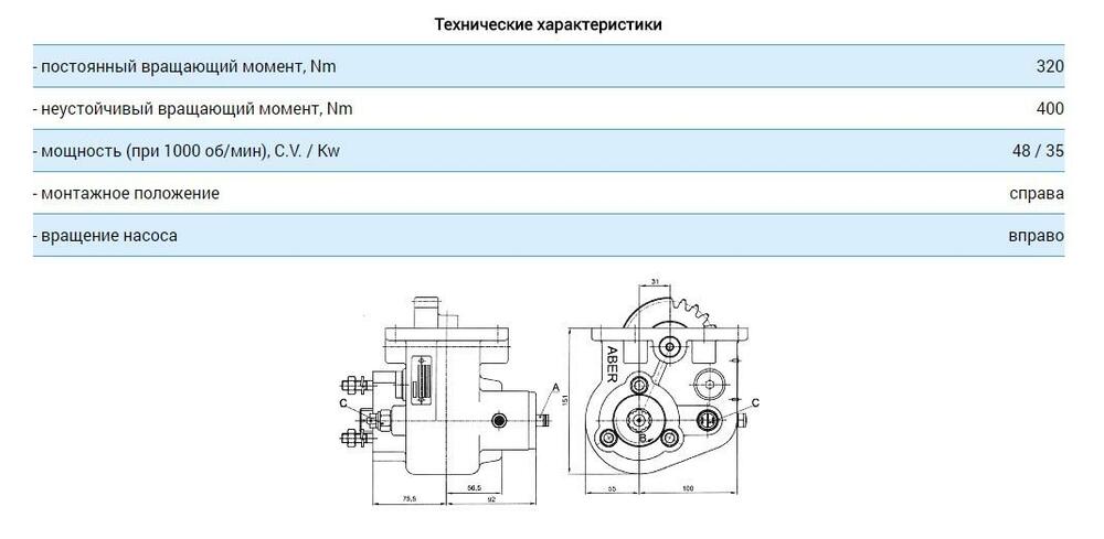 Коробка отбора мощности ABER (Португалия) на а/м Камаз с выходом под аксиально поршневой насос