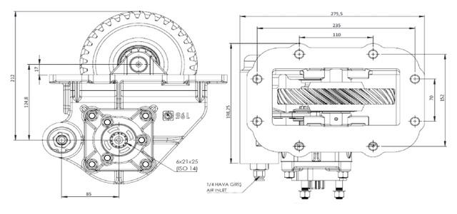 Коробка отбора мощности Ozcihan 195 AE с пневматическим управлением, разработанная для механических коробок передач Isuzu.