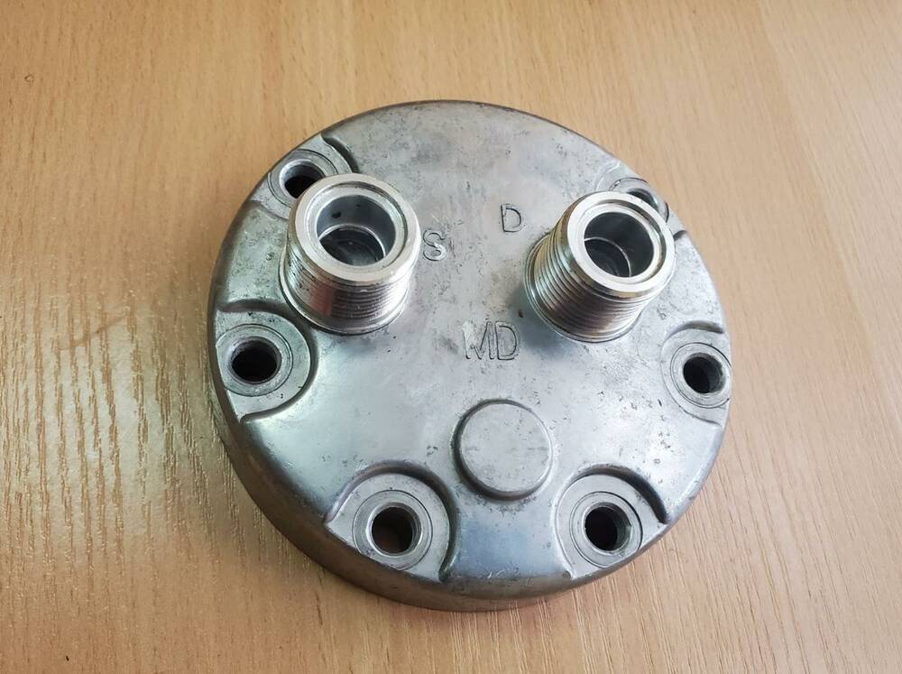 Крышка задня компрессора кондиціонера Sanden SD7H15 з горизонтальними виходами. Вхід 1"-14 UNС, вихід 1"-14 UNС (25мм і 25 мм)