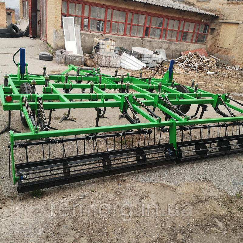 Глубина обработки почвы устанавливается винтовыми механизмами изменением положения опорных колес в рабочем положении. Опускание и подъем рабочих органов обеспечивается гидроцилиндрами, передачей усилия через вилки опорных колес. Перевод с рабочего в транспортное положение обеспечивается теми же гидроцилиндрами. Гидравлическая система культиватора воспринимает смазку под давлением от гидравлического мотора трактора.