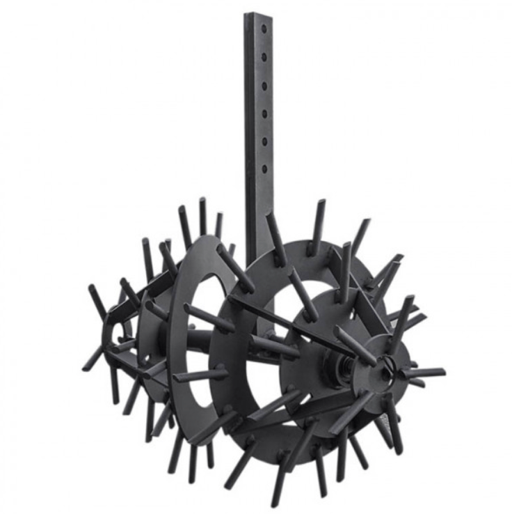 По обе стороны стойки расположены валы диаметром 30 мм, на которые установлены разрыхляющие элементы с шипами. Именно они и делают «Ежа» таким эффективным.