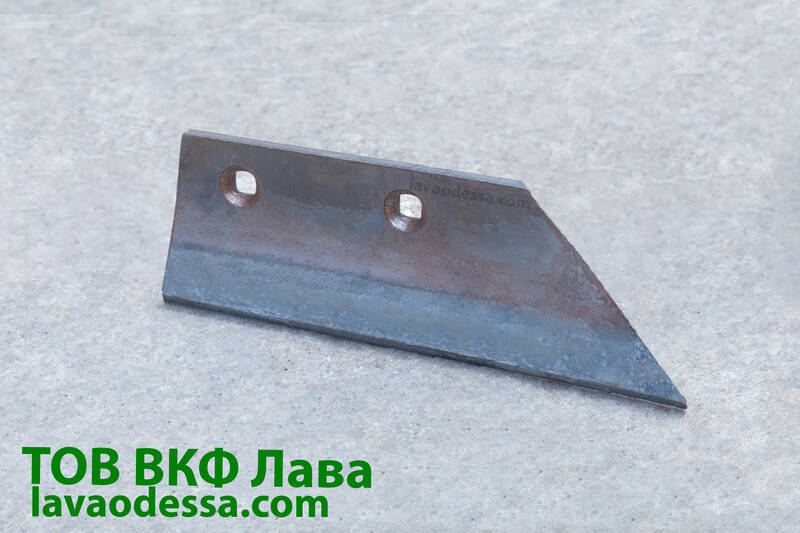 Лемех предплужника из стали 45, наплавленный твердым сплавом. Крепится к стойке предплужника двумя болтами ПМ 12*40.