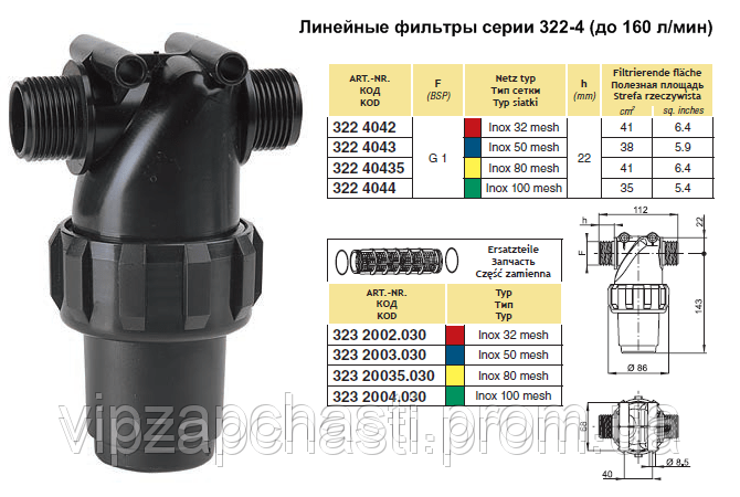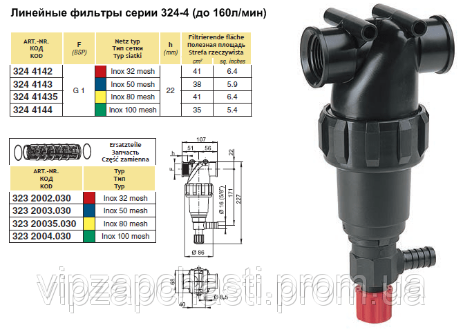 Линейный фильтр до 160л/мин (резьба 1"), 3244043
