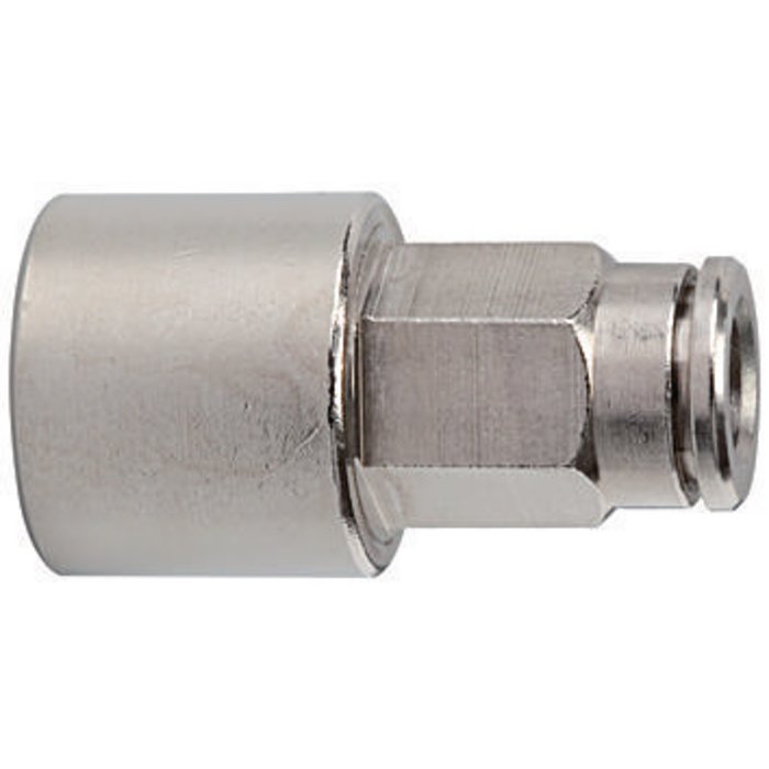 Push-in fittings, manufactured entirely in nickel-plated brass. All parts with a parallel thread are supplied with an FPM O-ring.<br>All parts with conical threads are coated with preCOTE 5 dispersion, all fittings in this series can thus also be used at high temperatures (medium compressed air).